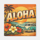A bright tropical beach sunset paired with a bold aloha message. This artwork brings a warm island atmosphere that works well for summer décor and casual lifestyle gifts.