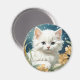 Magnet avec un chaton dans le style Art Nouveau d'Alphonse Mucha! Un chaton blanc et moelleux aux yeux bleus pose avec des fleurs jaunes. Un joli cadeau pour les amoureux de les chats et les collectionneurs Art Nouveau!