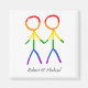 Cet aimant présente un design doux et chaleureux, parfait pour célébrer un mariage. Le graphique représente deux hommes, sous la forme d'élégantes figurines en bâton, se tenant la main. Les figures sont colorées dans un bel arc-en-ciel, symbolisant l'amour et la diversité. Cette pièce est une façon merveilleuse d'apporter une touche cohérente et significative à votre papeterie ou faveurs de mariage, célébrant votre union avec chaque détail.