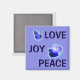 Cet aimant a une photo de papillons avec les mots amour, joie, et paix !