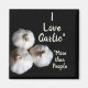 Un aimant culinaire humoristique avec 3 ampoules blanches à l'ail arrangées avec goût et mis en valeur contre un arrière - plan noir et un avertissement amusant que "I Love Garlic more than People". Le texte peut être personnalisé. Cet aimant fait un cadeau amusant pour un chef gastronomique, Votre cuisinier préféré ou un amoureux de la cuisine italienne. C'est une photographie alimentaire originale de JLW_PHOTOGRAPHY.