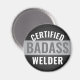 Add a stylish touch to a metal worker's home decorations with a customizable "Certified Badass Welder" round refrigerator magnet. All wording on this template is simple to personalize or delete. The black, white and gray design features a faux metallic brushed stainless steel background and modern bold typography. This humorous keepsake makes an elegant gift idea for a welder, metal worker, mechanic, or any other badass in your life. It's perfect to commemorate a graduation or successful achievement of certification.