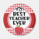 Célébrez le "meilleur enseignant jamais" avec cet aimant fantaisiste et adorable. Il dispose d'un à damiers rouge et blanc (plaid de buffle), d'un centre de parties scintillant et d'une jolie pomme kawaii.
