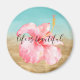 Aimant Aqua Marbre Or Aquarelle rose Hibiscus Fleur