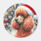 Aquarelle mignonne Rouge Standard Poodle Aimant de Noël aux tons vintages et un arbre de Noël en arrière - plan. Le cadeau idéal pour les amateurs de caniche qui possèdent un caniche standard rouge.