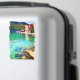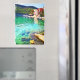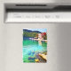 Aquarelle Extraordinaire voyage vintage Magnet avec vue sur la côte sur la belle île grecque de Kefalonia. Belles vacances grecques Bloc photo pour chaque touriste et fan de la destination touristique populaire dans la mer Méditerranée. Faites les vôtres et achetez maintenant.