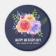 Un aimant avec les mots : Bonne fête des mères. Meilleure maman au monde. Texte modifiable / modifiable. Conçu avec un joli bouquet de roses aquarelles avec des sprigs, des feuilles et des branches, le tout dans un agencement fleuri coloré. Arrière - plan bleu marine.