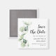 Aquarelle botanique mignonne Eucalyptus Mariage enregistrez l'aimant de date qui fait un parfait souvenir pour vos invités et sera chéri pendant des années. Remplacez facilement les noms, le faire-part, la date et le lieu pour créer une annonce unique sauvegardant l'annonce de date