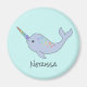Un narval arc-en-ciel nage dans la mer avec espace pour un nom personnalisé sur un aimant rond.