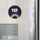 Un bouton qui dit "Yep" en dessous est un arc-en-ciel, un symbole humoristique de la fierté lesbienne et lesbienne des blogs.