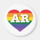 Cet aimant présente un coeur avec un motif de fierté arc-en-ciel et les caractères gras, blancs, majuscules AR, l'abréviation officielle pour Arkansas, l'état naturel. Montrez vos vraies couleurs, soutenez l'égalité dans le mariage et célébrez le gay pride.