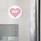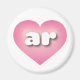 Cet aimant est doté d'un coeur rose avec un centre blanchi contenant les lettres coques inférieures blanches, arrondies et audacieuses, une version ludique de l'abréviation Arkansas, l'état naturel.