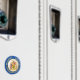 Les armoiries nationales de la Barbade, sont infusées au centre d'un faux cercle doré. Autour de cette image, est une fausse couronne de laurier d'or qui complète le design.