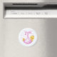 Un adorable petit faire-part avec une petite fille dans une couverture rose contre un arrière - plan bleu doux aux étoiles roses. Vous pouvez customiser cet aimant vous-même avec un nom ou un autre texte !