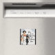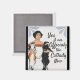 Oui, vous êtes maintenant officiellement la dame du chat de quartier.Amusant style art déco magnet. Il y a une femme tenant des chats. Dans les couleurs du blanc, du bleu, du noir et de l'orange.