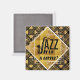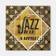 Un design art déco jazz avec un saxophone et dit "jazz un peu". Fait en or et noir.