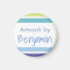 Cet aimant a les mots "Artwork by" avec un nom personnalisé, afin que chaque enfant puisse montrer ses propres oeuvres. Le design à rayures bleues et vertes apporte une touche artistique supplémentaire.