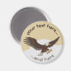 Illustration d'un aigle volant attaquant avec des ailes ouvertes. Deux champs de texte personnalisés sur cercle.
