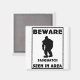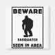 Signal noir & blanc, avertissant les intrus qu'un Sasquatch a été vu dans cette zone. Phrase dit, "Attention" sur le haut de l'affiche en gros caractères noirs avec une silhouette sasquatch noire au centre et des mots, "Vu dans la zone", écrit au bas du panneau.