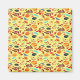 Chute motif avec citrouilles, feuilles secs, noix et champignons sur arrière - plan jaune.