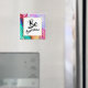 Aimant avec le texte : Soyez génial écrit à l'intérieur d'un cadre blanc avec une fausse bordure de feuille d'or. L'arrière - plan est un design abstrait artistique sophistiqué. Peinture aquarelle avec les couleurs mélangeant et mélangeant créant un beau look de marbre à couches fluides.