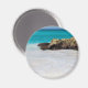 Magnet avec une belle photo. Une plage de sable blanc, au surf doux. Une eau tropicale turquoise entoure un rocher déchiqueté.