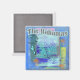 Conçu sur mesure, multicolore dans les tons tropicaux bleu, collage artistique avec eau, palmiers et une carte des îles des Bahamas.