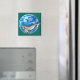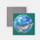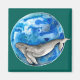 Tableau aquarelle original de Sandra Gale, représentant une baleine à bosse nageant devant un globe aquatique bleu représentant la terre. Un design parfait pour les amateurs de baleines, les plongeurs, les défenseurs de l'environnement et ceux qui aiment les baleines.