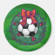 Festive balle de football dans la couronne de Noël sur des ornements verts, des cadeaux et des décorations amusantes présentent notre art original d'une balle de football noir et blanc à l'intérieur d'une couronne de saint vert avec un arc rouge vif sur un arrière - plan vert avec notre texture de brosse sèche signature. Cette boule de sport décorée de vacances est parfaite pour tous ceux qui aiment le sport et les vacances. Amusez-vous un Noël amusant et sportif. Conception personnalisée disponible.