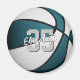 Cet aimant cool à thème de basket présente l'image d'un basketball réaliste avec alternance de panneaux recolorés turquoises et blancs - facilement customiser avec le nom et le numéro de maillot de l'athlète - par katz_d_zynes