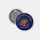 Élégant et élégant HANOUKKA BLESSINGS Magnet. Le design montre un MENORAH couleur or avec l'étoile multicolore de DAVID et gris argenté DREIDEL. En haut il y a le texte courbe qui dit BARUCH ATAH, ADONAI (Béni soit toi, ô Dieu) et en dessous le texte dit HANOUKKA BLESSINGS. TOUT TEXTE EST PERSONNALISABLE, vous pouvez donc personnaliser avec votre propre choix de salutation et de texte. La couleur arrière - plan est bleu nuit. D'autres versions sont disponibles dans la collection HANOUKKA par Berean Designs.