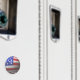 Le drapeau américain couvre la surface d'un ballon de basket.