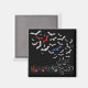 Bar à musique avec des notes crâniennes en rouge foncé, bleu et noir, ouverture et avec beaucoup de chauves-souris volant.
