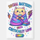 Design coloré et dynamique, avec un chat cosy enveloppé d'une couverture, assis à côté d'une pile de livres sirotant du café. Le texte coloré dit : "Bataille sociale à un niveau critique". Ce design est disponible sur une grande variété de produits.