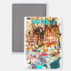 Aimant d'aquarelle rétro cool avec un marché (bazar) de Marrakech ou Marrakech au Maroc. Fonctionne comme un souvenir de voyage et aussi une idée cadeau pour mémoriser vos vacances dans le Maghreb