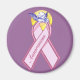 Chérube adorable reposant sur un ruban BCA rose stylisé, conception par CRS