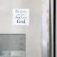A lovely reminder of your forfaitaire, this refrigerator magnet features "Be still and know that I am God" Psalm 46:10. This scripture is in lovely blue and purple text. Makes a great fundraising item for a Church project, order yours today!