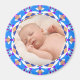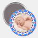 Circulaire Happy Blue Frame Baby Boy Girl Grand-parent’s Day Cadeau Photo Magnet. Remplacez la photo par une photo de votre bébé. Offrez comme cadeau aux nouveaux grands-parents. Grand-mère et Grand-mère adoreront mettre sur leur frigo cet aimant motif coloré de bleu, violet, blanc, rose et sable pour célébrer la naissance de leur petit-enfant ou de leurs petits-enfants. Pour les personnes qui aiment le design éclectique, maximaliste, coloré.