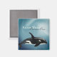 Cet aimant présente une belle aquarelle de la baleine tueuse avec son nom latin, Orcinus Orca. -