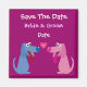 Mignonne et amusante Sauvez l'aimant Date avec des chiens et des coeurs de dessin animé sur un arrière - plan rose. Modifiez le texte pour ajouter les noms de la mariée et du marié et la date du mariage. Les couleurs du texte et de l'arrière - plan sont personnalisables - beaucoup de polices et de couleurs différentes. Une façon amusante de rappeler à vos invités votre date de mariage. Si vous avez besoin d'aide pour customiser votre produit, veuillez me contacter par l'intermédiaire de mon magasin et je serai très heureux de vous aider.
