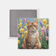 Un chat gai s'installe paisiblement sur une pelouse verdoyante, entourée de fleurs printanières colorées sous un ciel bleu doux. Cette peinture à l'huile numérique saisit un moment de sérénité avec des coups de pinceau expressifs, des couleurs chaudes et un sentiment de joie douce.
