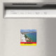 Un aimant photographique de voyage coloré avec une scène de la Playa Levante plage et des hôtels à Benidorm, Espagne
