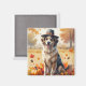Un tableau aquarelle d'un chien gai assis au milieu d'un tas de feuilles d'automne vibrantes, entouré de minuscules citrouilles et de glands épars. Le chien porte un petit casquette pèlerin et des poutres de joie, capturant l'esprit de Thanksgiving. Dans l'arrière - plan, les champs de moissons et les arbres dorés créent une ambiance campagnarde paisible. Des textures douces et des tons d'automne chauds et feutrés confèrent à la scène une atmosphère cosy et nostalgique parfaite pour célébrer la beauté de la saison.