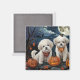 Libérez l'esprit éffrayant avec ce design d'Halloween étrange avec une meute de chiens sous un ciel sombre et clair de lune, entourée de chauves-souris volantes et de citrouilles brillants. Parfait pour ceux qui aiment une touche de plaisir effrayant avec leurs amis en fureur !
