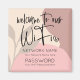 Un design artistique pour votre réfrigérateur avec un message pratique, vos détails WiFi, afin qu'ils soient toujours à la main. Des formes Abstraites et des feuilles simplistes dans les tons rose, bordeaux et crème, ainsi qu'un script stylé informel accueillant vos visiteurs à votre WiFi, donnent un look tendance. Le reste du texte que vous pouvez facilement personnaliser avec vos propres informations réseau et mot de passe.
