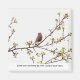 Photo d'un petit oiseau assis dans un cerisier fleuri avec son bec large ouvert, chantant une chanson. La légende dit : "Saluez chaque jour avec une chanson dans votre coeur". Cette photo est tirée de mes calendriers et livres "Leçons de vie de mes amis sauvages".