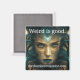 Une femme étrange et surréaliste avec la légende "bizarre, c'est bien".