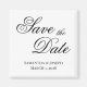 Mariage blanc et noir sauvez la date petits magnets carrés. La police décorative "Save the Date" est un style de calligraphie classique et sophistiqué associé à un style de police moderne. Customisez les couleurs de l'arrière - plan ou du texte pour qu'elles correspondent à votre palette de couleurs de mariage.