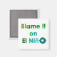Vous avez des problèmes ? Besoin d'un bouc émissaire ? Blâmez El Nino ! Quand Mère Nature attaque avec des tornades, des ouragans, des sécheresses et des tempêtes hivernales, les météorologues regardent l'océan Pacifique et accusent El Nino - pourquoi ne le pouvez-vous pas ? Super écodesign pour le Jour des terres, le changement climatique, les problèmes de copine/petit ami, et pour ce météorologue spécial dans votre vie.