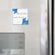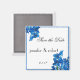 Cet amusant aimant Save the Date est une excellente façon de garder votre date mariage à l'esprit de tous! L'arrière - plan est blanc avec une bordure bleue. Dans les coins opposés, il y a des fleurs d'orchidées bleues. Votre texte personnalisé est centré.